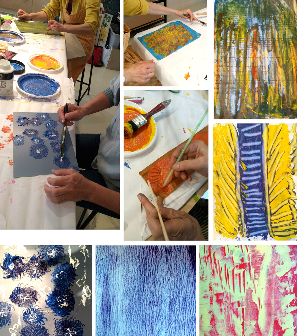 L’atelier des art-thérapeutes ce vendredi fut riche en découvertes et en partages, et en gaité ! Nous avons exploré la technique de la peinture à la colle, sur de multiples supports, commenté nos multiples ressentis ; nous proposerons une autre date pour approfondir plus encore cette médiation.