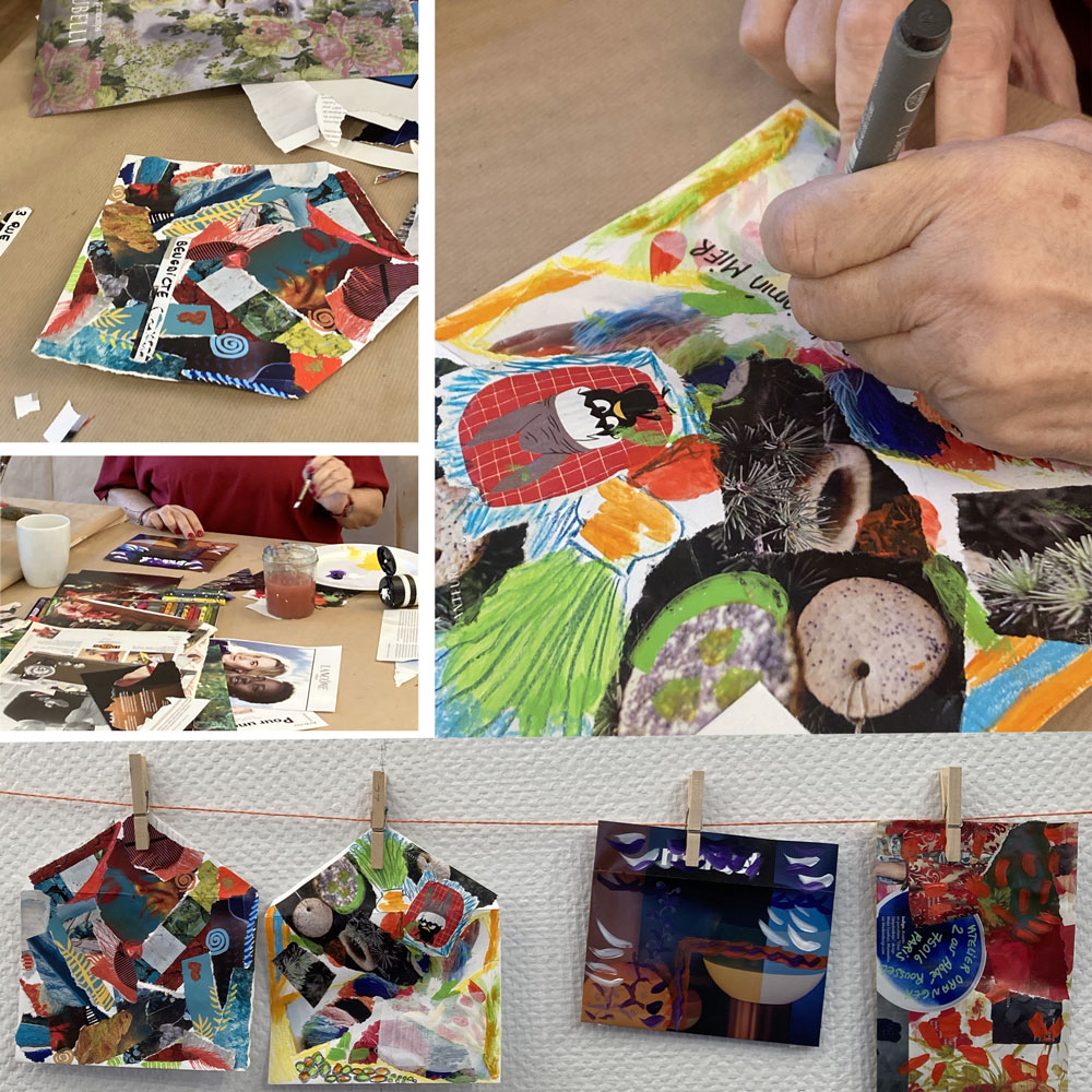 De tout temps les artistes se sont emparés des enveloppes, des colis, comme autant d’oeuvres d’arts colorées, dessinées, sculptées, et les ont fait voyager par courrier jusqu’à leurs destinataires. De nos jours la poste accepte tous les formats, à condition que adresses et timbres soient visibles. En ces temps où le courrier postal personnel que nous recevons est plus rare, nous revisitons en atelier le lien à distance, avec sa qualité toute spéciale, unique, pour chaque destinataire. Atelier en collages et techniques mixtes.